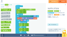 意図した通りにロボットが動いたかどうかを確認します。ブロックでつくった造形とプログラムを確認し、試行錯誤を繰り返します。