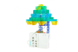 ラプスのプログラミング教室では、ソニー・グローバルエデュケーションが開発した教材「KOOV(クーブ)」を使用します。KOOVは、ブロックを組み立てることで様々な形を表現することができます。試行錯誤を繰り返しながら、一人ひとり個性や想像力を発揮して答えを出し、「問題発見力」や「やり抜く力」を育てます。